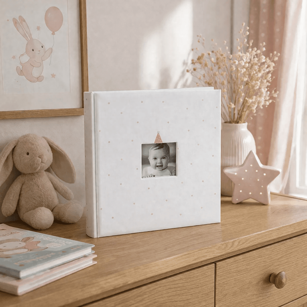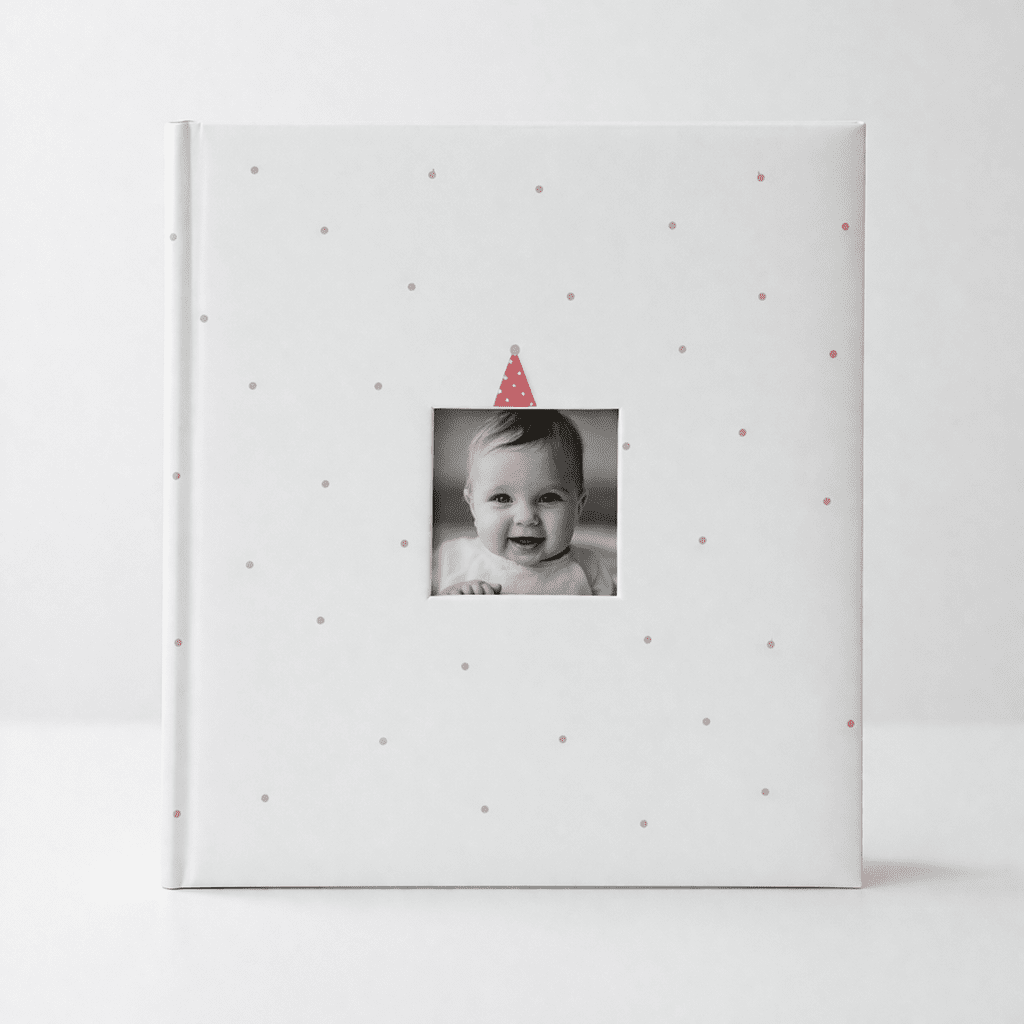Detský fotoalbum Baby Clown je navrhnutý na uchovanie najkrajších spomienok z prvých rokov života. Vďaka jemnému bodkovanému dizajnu a priestoru na vlastnú fotografiu na prednej strane pôsobí osobne a zároveň esteticky čisto.