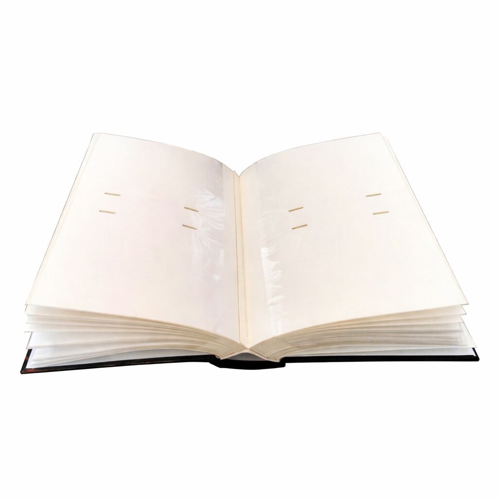 Album má klasickú šitú väzbu a pevné dosky, ktoré chránia uložené fotografie. Vnútorné strany sú vybavené priehľadnými plastovými vreckami na zasúvanie fotografií, takže ich môžete jednoducho vložiť bez lepenia alebo ďalších pomôcok.