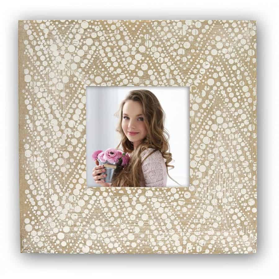 Drevený rám Chennai, prírodnej farby s bielou dekoratívnou potlačou, na stôl aj stenu, vhodný do domácnosti i kancelárie.