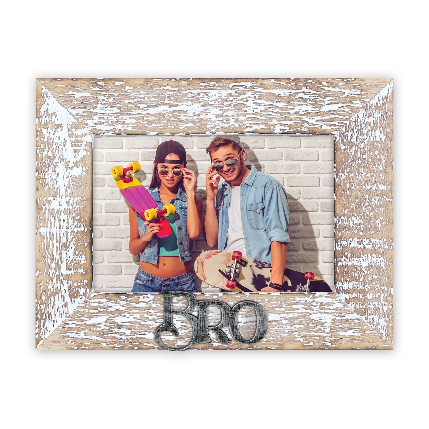Drevený rám Ethan, vintage hnedá farba, s vyrazeným čiernym kovovým nápisom BRO, ideálny na oslavu výročí alebo narodenín, vhodné do domácnosti aj kancelárie.