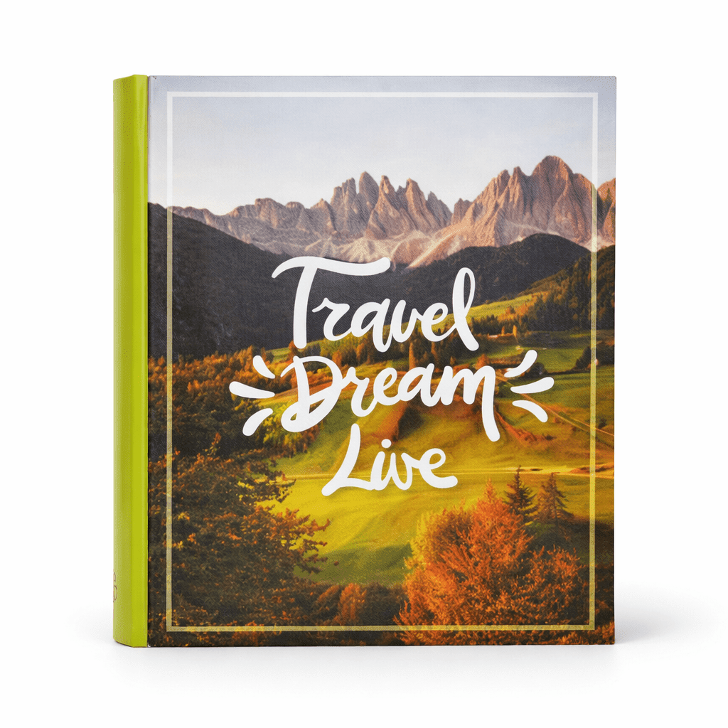Obal albumu zaujme prírodným motívom hôr a sviežou zelenou farbou na chrbte, ktorá pôsobí moderne a zároveň príjemne doplní interiér. Album sa hodí najmä na uchovanie spomienok z dovoleniek, výletov alebo rodinných momentov.