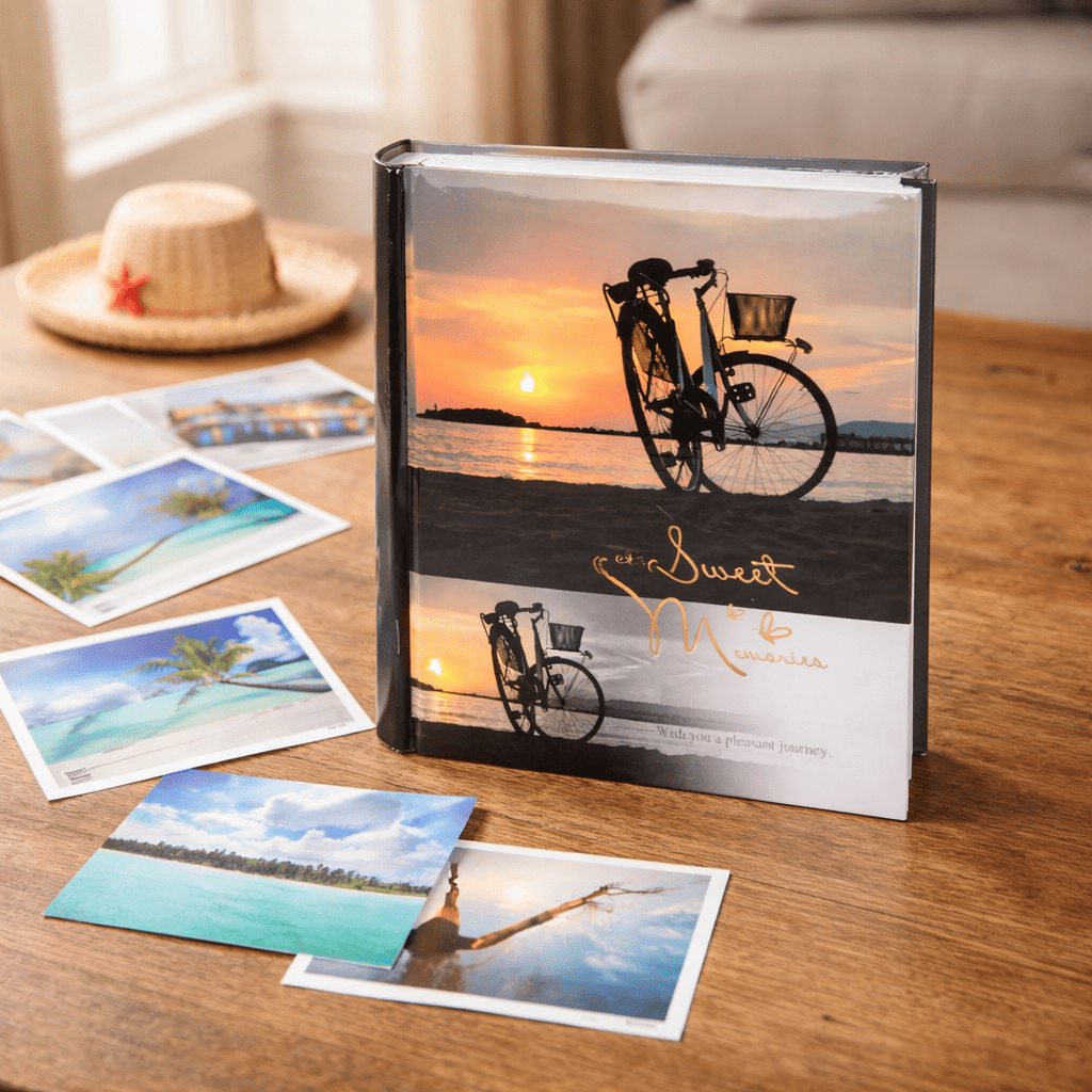 Fotoalbum Summer Beach 2 je vhodnou voľbou pre každého, kto chce mať svoje obľúbené zábery uložené prehľadne a na jednom mieste. Vďaka zasúvaciemu systému sa fotografie vkladajú jednoducho a album je pripravený na bežné rodinné, dovolenkové aj výletné momenty. Na obale pôsobí jemne a pokojne motív bicykla pri západe slnka, takže album sa hodí aj ako milý darček.