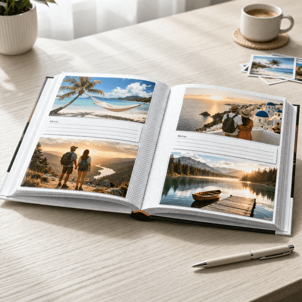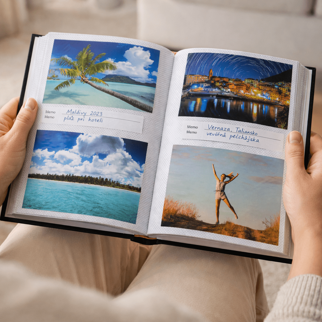 Tento typ albumu sa hodí na dovolenkové fotografie, rodinné spomienky, výlety aj bežné momenty zo života. Vďaka neutrálnejšiemu prevedeniu nepôsobí príliš tematicky, takže je vhodný aj ako darček pre blízkych.