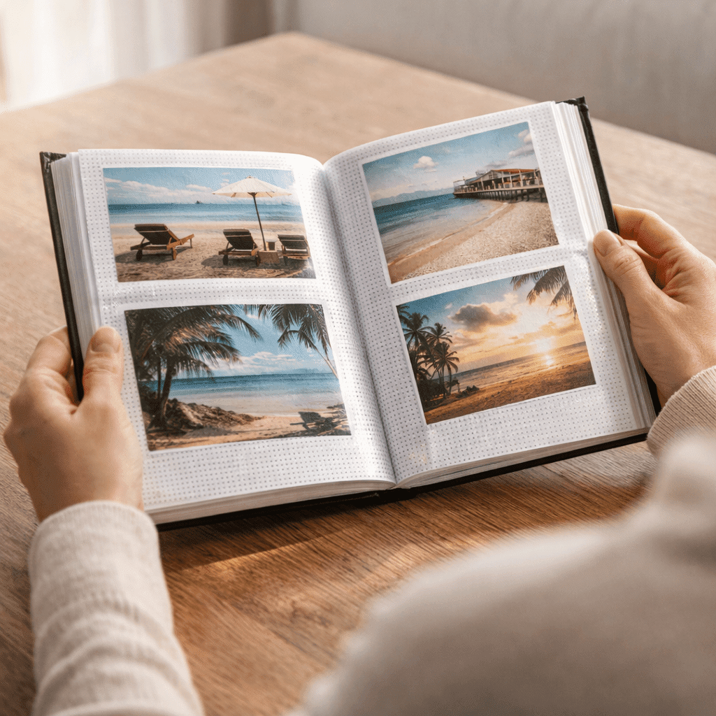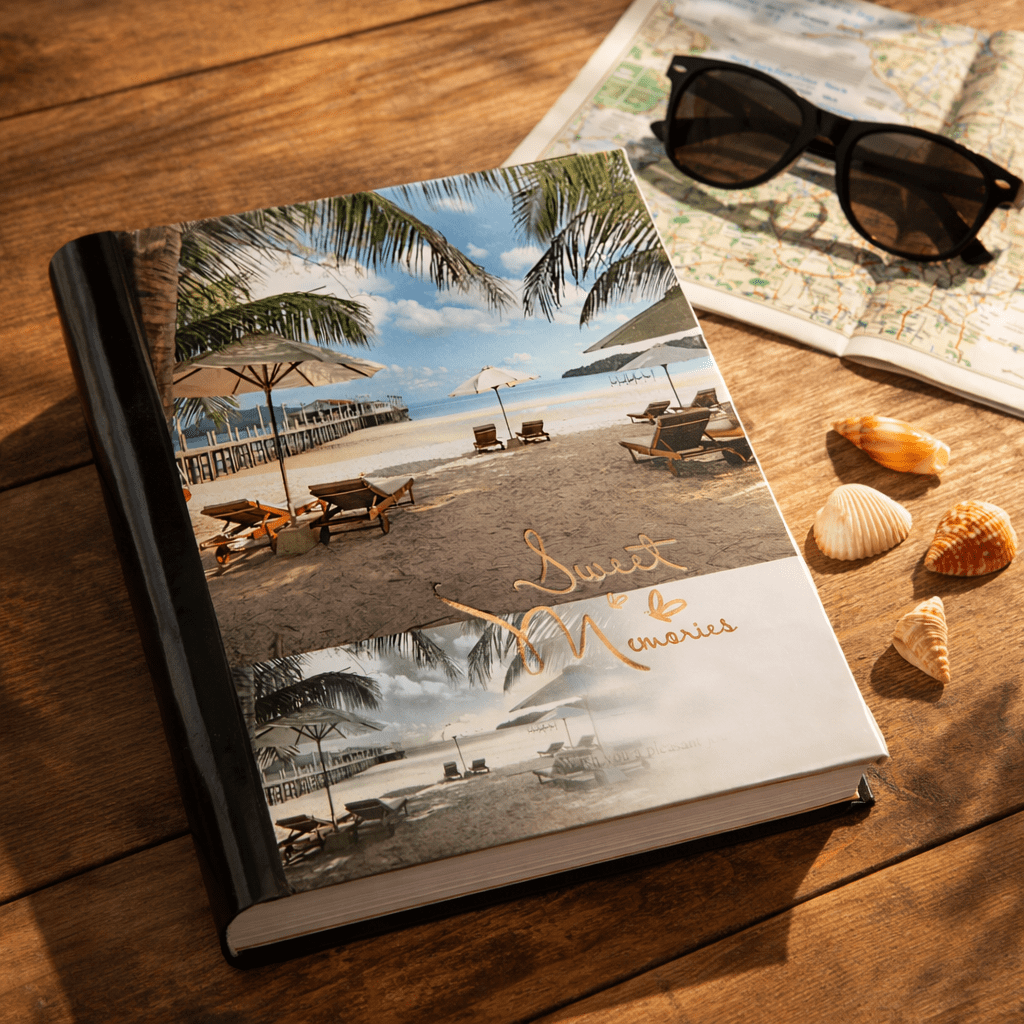 Dizajn s motívom pláže, paliem a mora pôsobí sviežo a prirodzene. Album sa hodí najmä na dovolenkové zábery, ale rovnako dobre poslúži aj na každodenné momenty, ktoré si chcete uchovať pre budúcnosť.