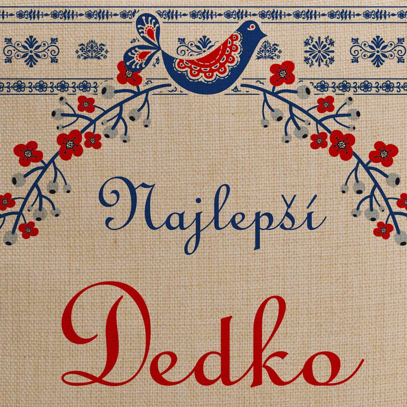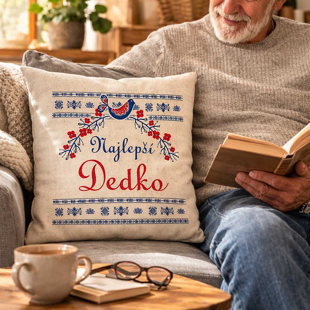 Dekoračný vankúš s nápisom „Najlepší Dedko“ je milý a zároveň štýlový darček, ktorý poteší každého starého otca. Dizajn vychádza z tradičných ľudových ornamentov a dopĺňa ho ilustrácia vtáčika a kvetinových motívov. Vďaka tomu pôsobí vankúš príjemne, dekoratívne a zároveň prirodzene zapadne do interiéru.