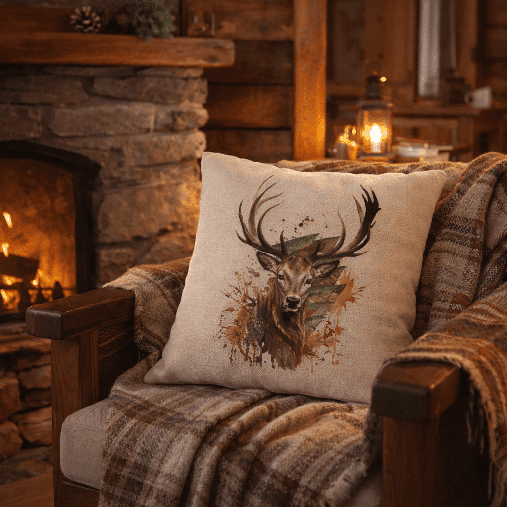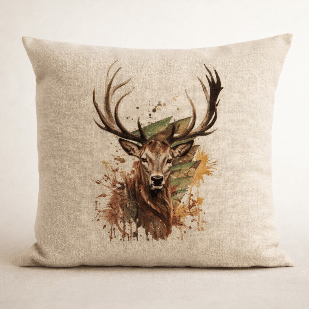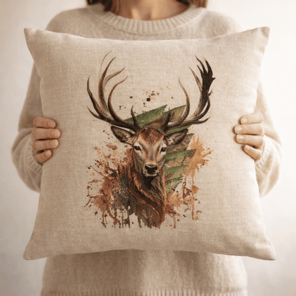 Dekoratívny vankúš s motívom hrdého jeleňa je zaujímavým doplnkom do interiéru, ktorý prirodzene pritiahne pozornosť. Kombinácia jemnej ľanovej textúry a výraznej potlače zvieraťa pôsobí harmonicky a zároveň dodáva priestoru osobitý charakter.