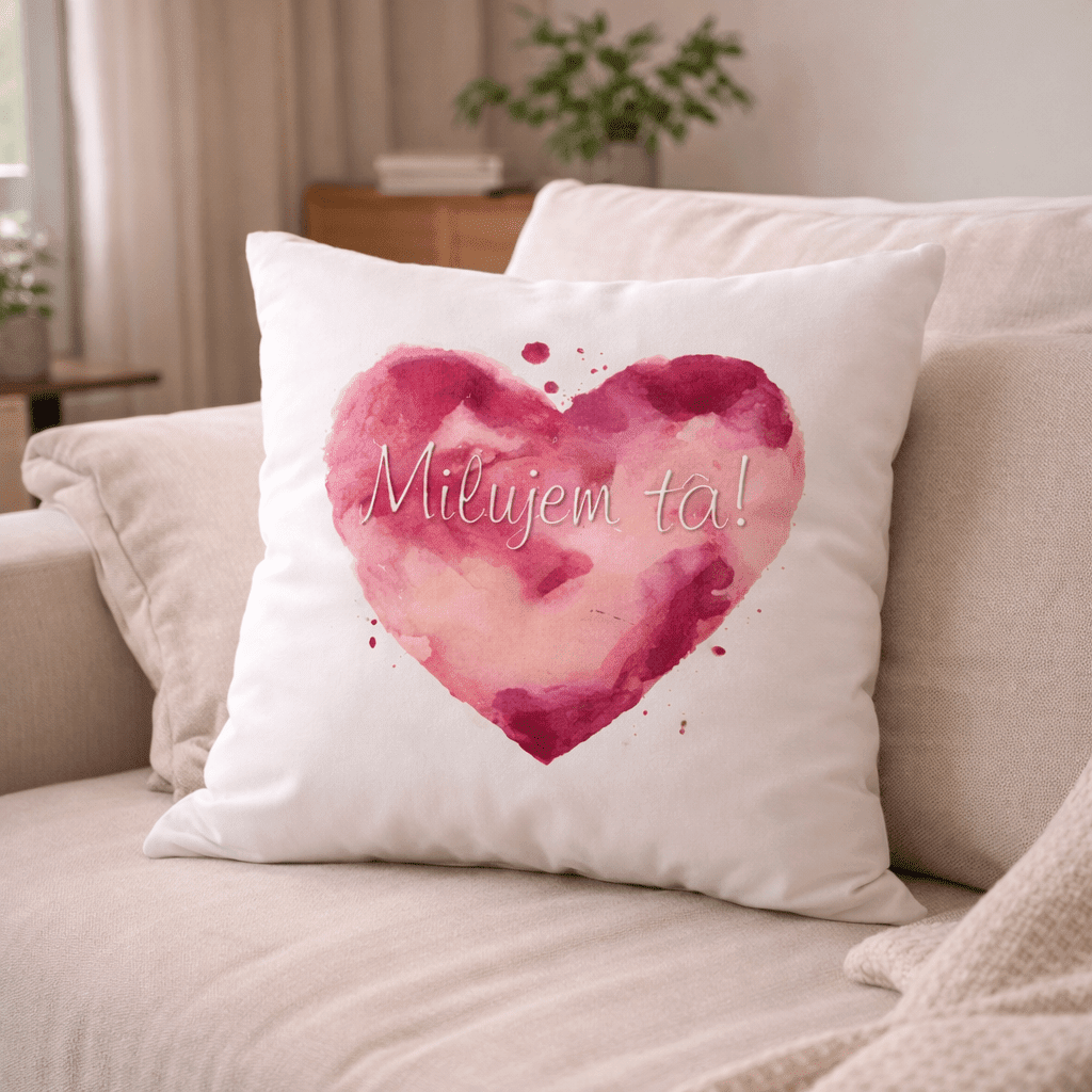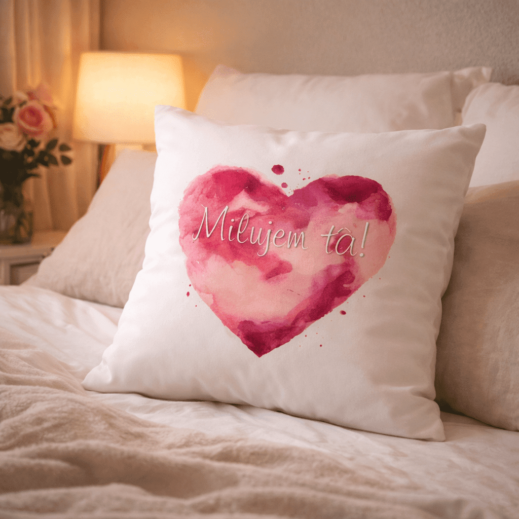 Dekoračný vankúš s motívom srdca a nápisom „Milujem ťa“ je jednoduchý spôsob, ako vyjadriť emócie aj prostredníctvom interiéru. Vďaka jemnému dizajnu na bielom podklade pôsobí čisto a zároveň osobne.