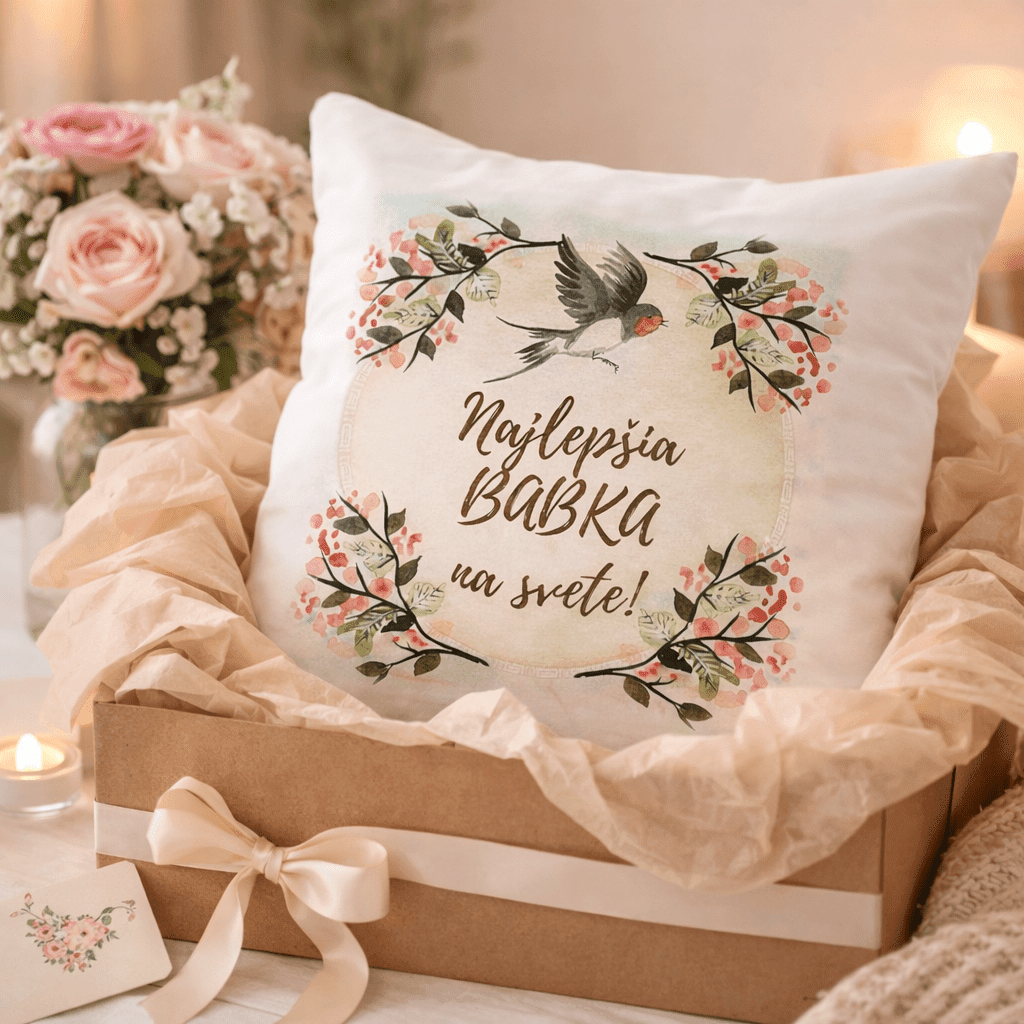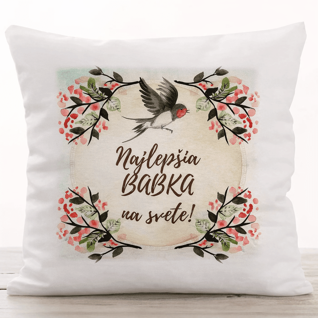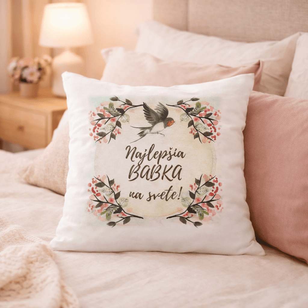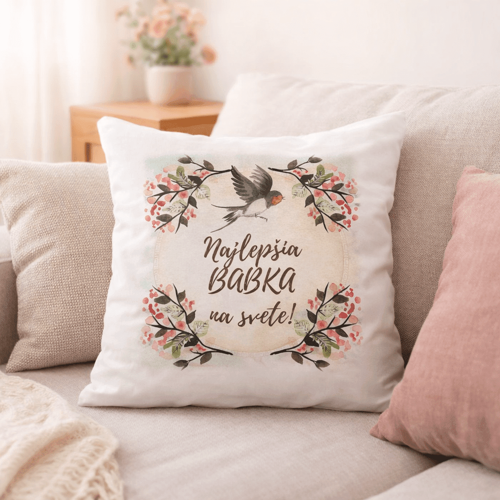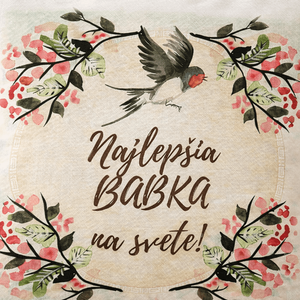 Dekoratívny vankúš s nápisom „Najlepšia babka na svete“ je milý doplnok do domácnosti a zároveň osobný darček, ktorý poteší. Vďaka jemnému kvetinovému motívu a ilustrácii vtáčika pôsobí vankúš príjemne a prirodzene, takže sa ľahko hodí do obývačky, spálne alebo na obľúbené kreslo.