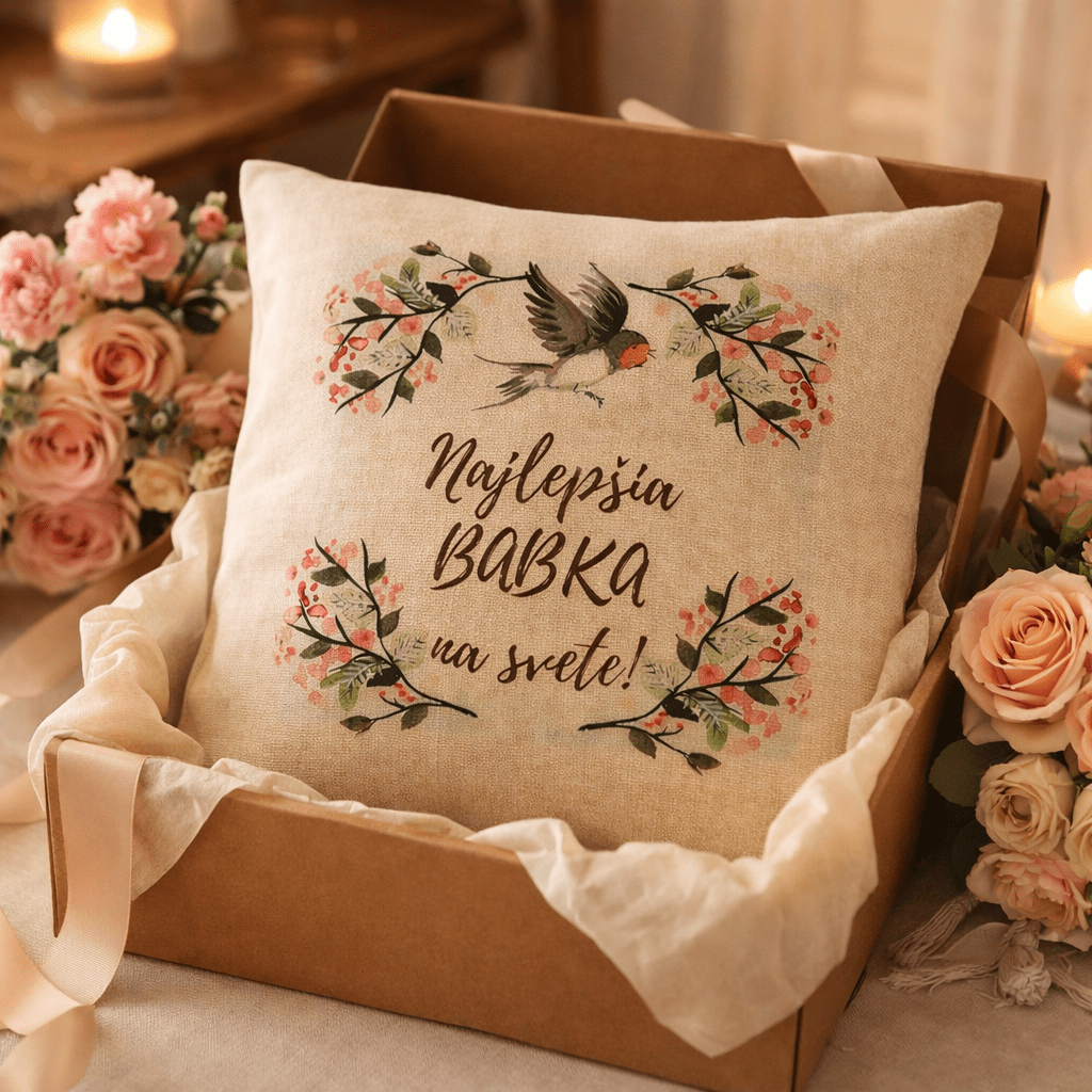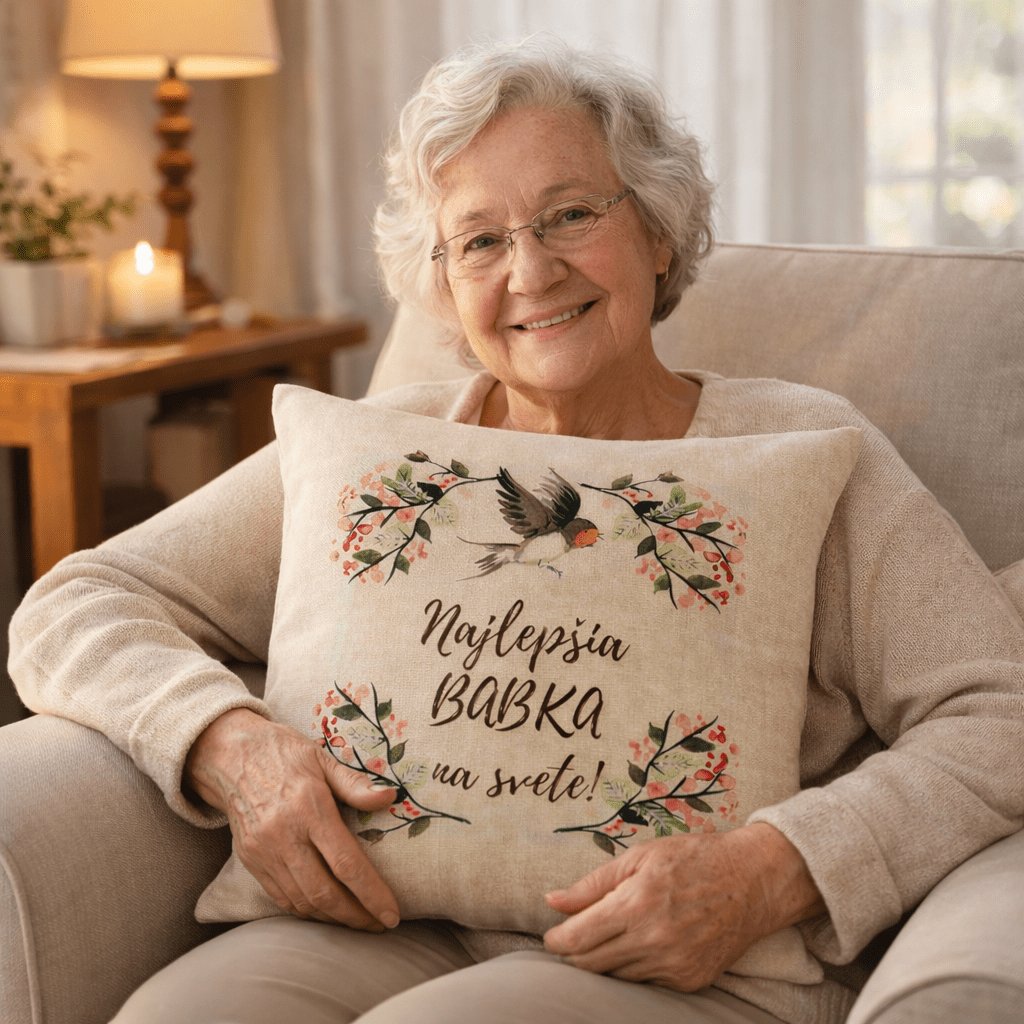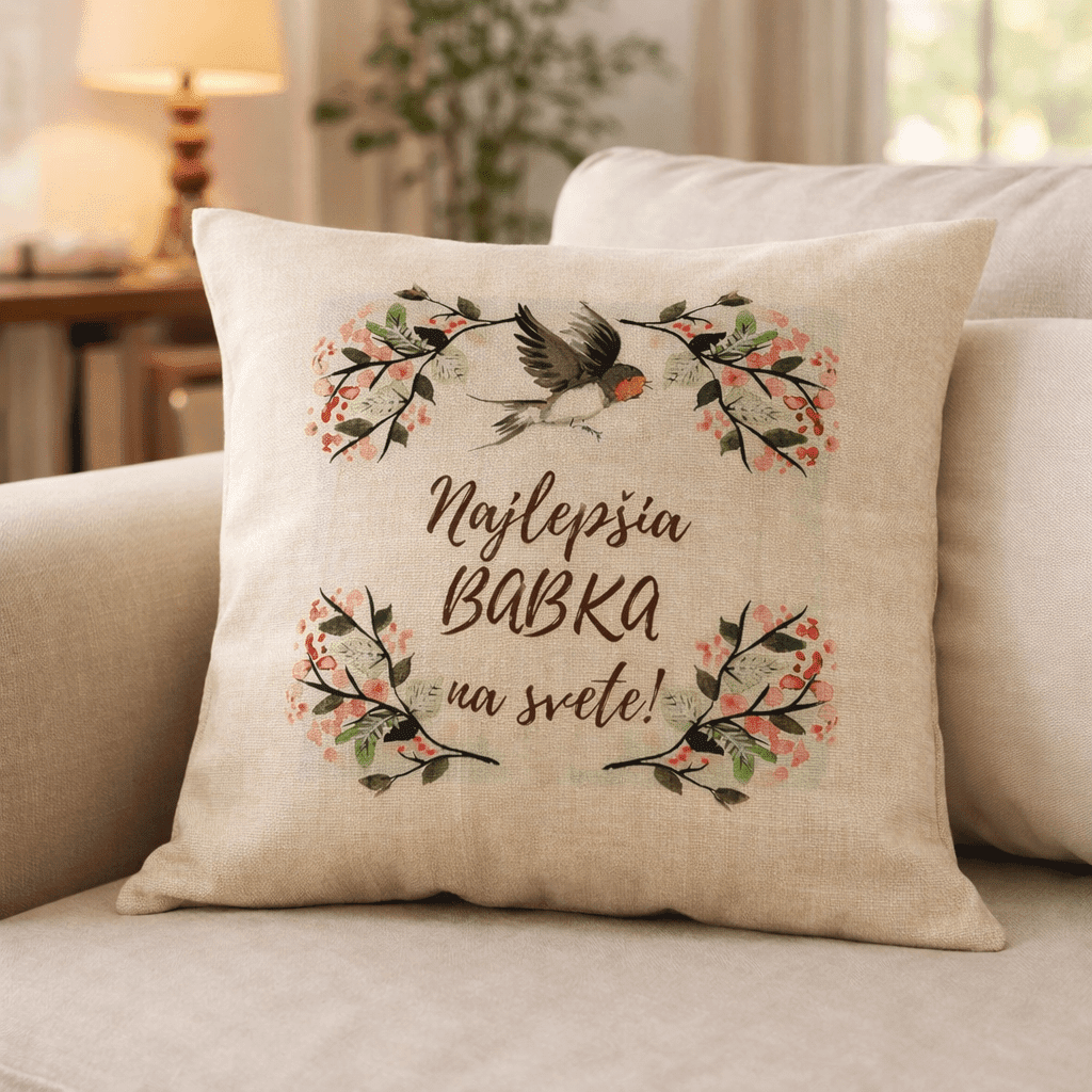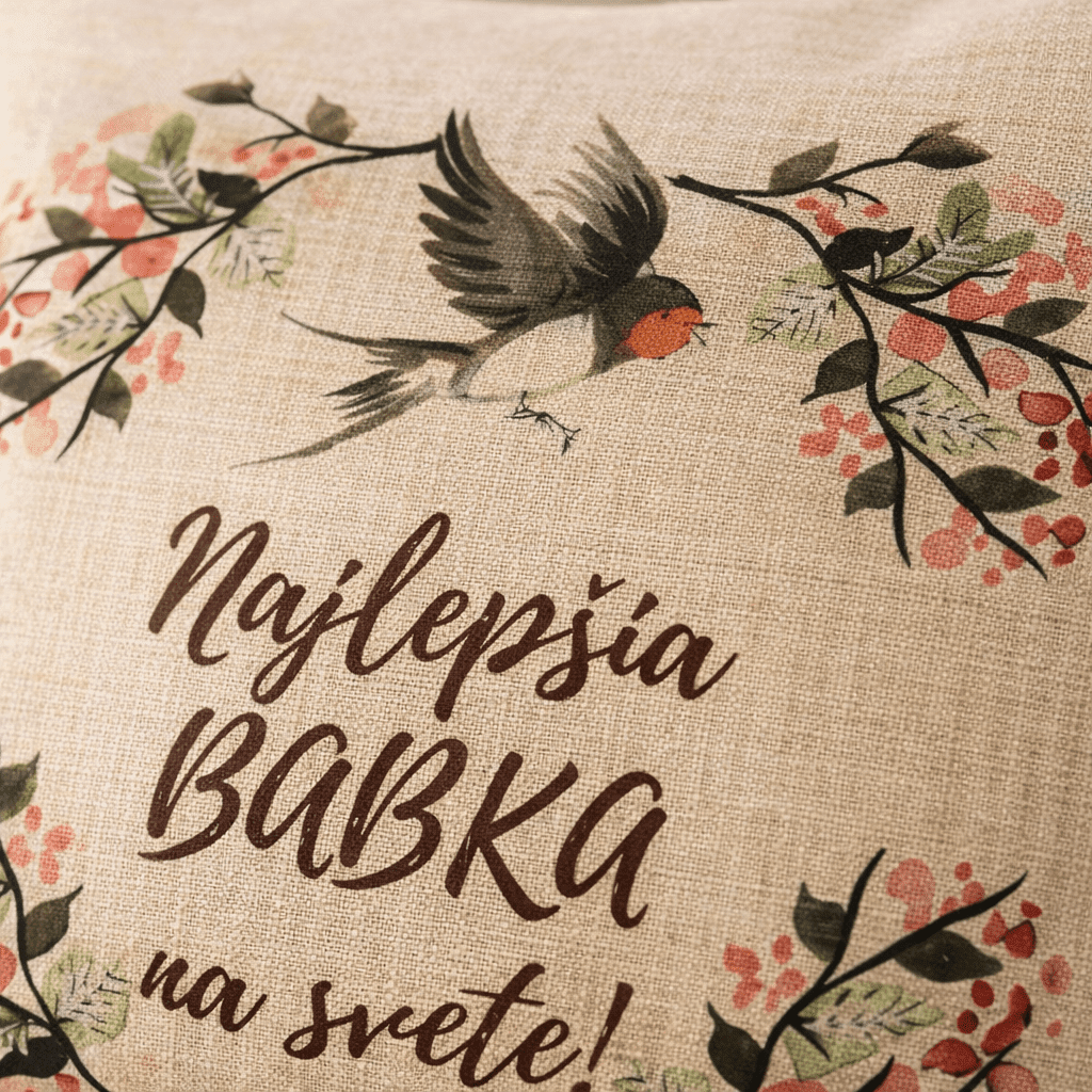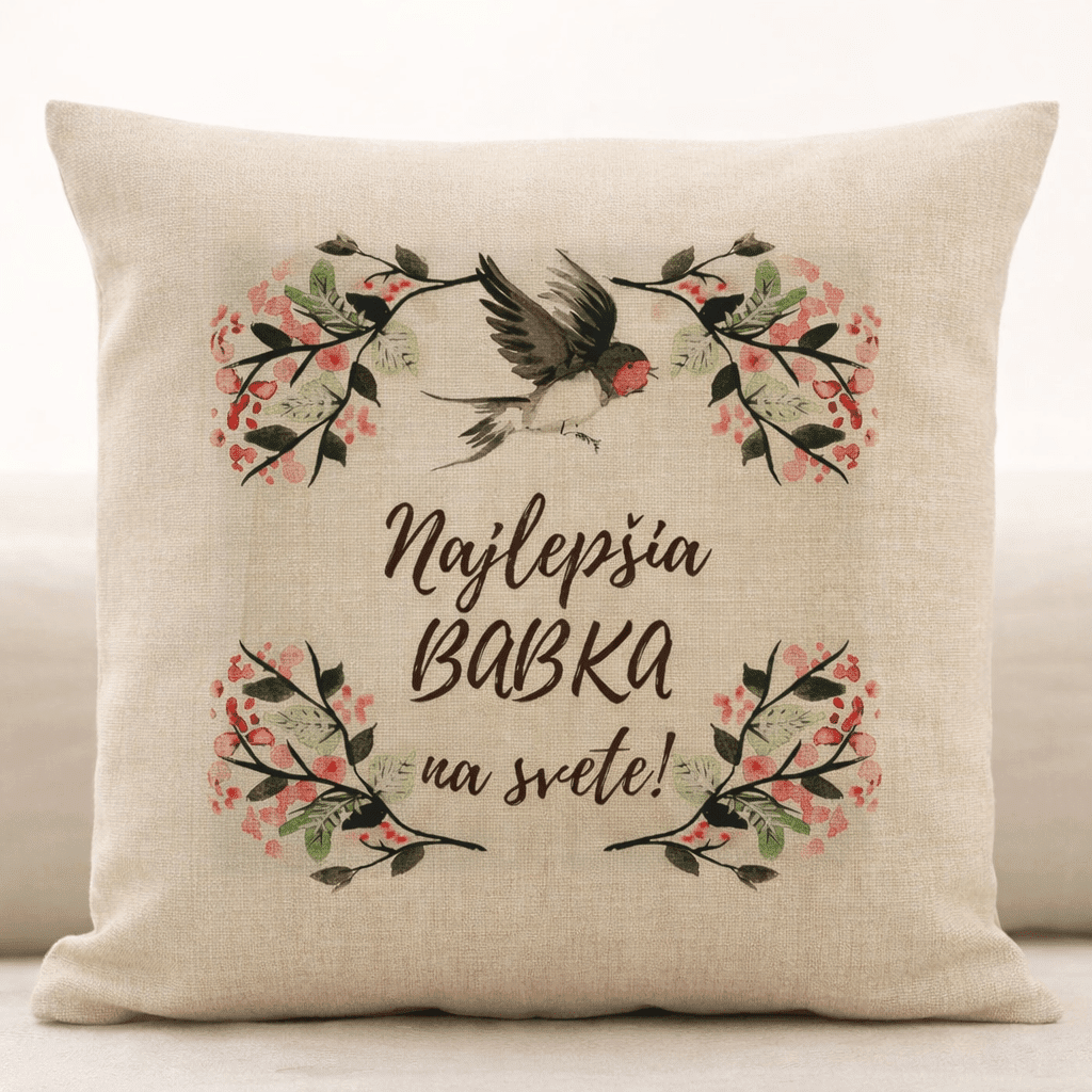 Dekoratívny vankúš s nápisom „Najlepšia babka na svete!“ je milým doplnkom do interiéru a zároveň osobným darčekom, ktorý poteší pri rôznych príležitostiach. Kombinácia jemného kvetinového motívu a vtáčika pôsobí prirodzene a harmonicky, vďaka čomu sa vankúš hodí do moderných aj klasických interiérov.